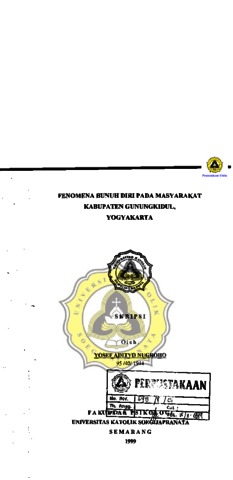 NUGROHO, YOSEF ADITYO (1999) FENOMENA BUNUH DIRI PADA MASYARAKAT KABUPATEN GUNUNGKIDUL, YOGYAKARTA. Other thesis, Prodi Psikologi Unika Soegijapranata Semarang.