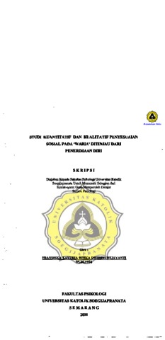 WIJAYANTI, FRANSISKA XAVERIA ISTIKA DWIRINI (2001) STUDI KUANTITATIF DAN KUALITATIF PENYESUAIAN SOSIAL PADA 'WARIA' DITINJAU DARI PENERIMAAN DIRI. Other thesis, Prodi Psikologi Unika Soegijapranata Semarang.