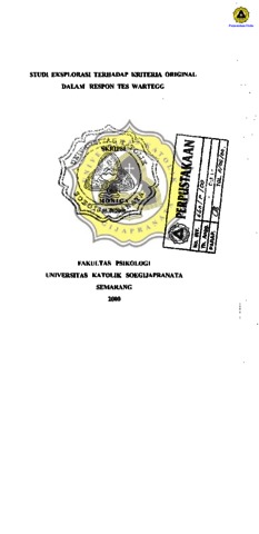MONICA, - (1999) STUDI EKSPLORASI TERHADAP KRITERIA ORIGINAL DALAM RESPON TES WARTEGG. Other thesis, Prodi Psikologi Unika Soegijapranata Semarang.