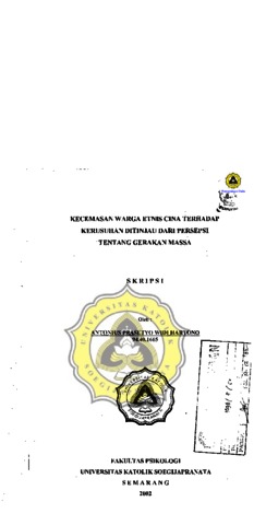 HARTONO, ANTONIUS PRASETYO WIDI (2002) KECEMASAN WARGA ETNIS CINA TERHADAP KERUSUHAN DITINJAU DARI PERSEPSI TENTANG GERAKAN MASSA. Other thesis, Prodi Psikologi Unika Soegijapranata.