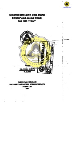SATIVA, R.A ORIZA (1999) KECEMASAN PENGENDARA MOBIL PRIBADI TERHADAP ANAK JALANAN DITINJAU DARI SELF EFFICACY. Other thesis, Prodi Psikologi Unika Soegijapranata Semarang.