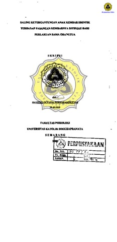 PURWAKANINGTYAS, HANNING OCTAVIA (2000) SALING KETERGANTUNGAN ANAK KEMBAR IDENTIK TERHADAP PASANGAN KEMBARNYA DITINJAU DARI PERLAKUKAN SAMA ORANGTUA. Other thesis, Prodi Psikologi Unika Soegijapranata Semarang.