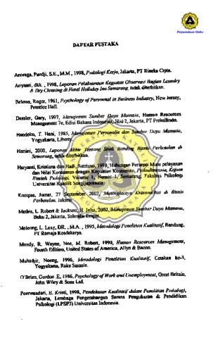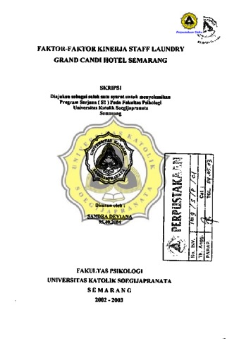 DEVIANA, SANDRA (2002) FAKTOR-FAKTOR KINERJA STAFF LAUNDRY GRAND CANDI HOTEL SEMARANG. Other thesis, Prodi Psikologi Unika Soegijapranata Semarang.
