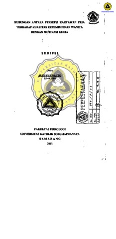 HUBUNGAN ANTARA PERSEPSI KARYAWAN PRIA TERHADAP KUALITAS KEPEMIMPINAN WANITA DENGAN MOTIVASI KERJA