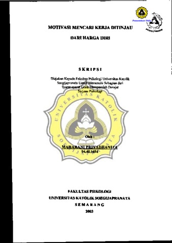 PRIYADHANITA, MAHARANI (2003) MOTIVASI MENCARI KERJA ADITINJAU DARI HARGA DIRI. Other thesis, Prodi Psikologi Unika Soegijapranata.