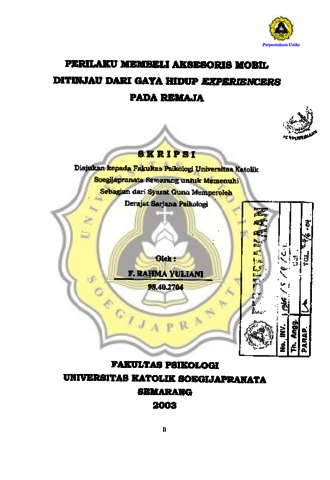 YULIANI, F. RAHMA (2003) PERILAKU MEMBELI AKSESORIS MOBIL DITINJAU DARI GAYA HIDUP EXPERIENCERS PADA REMAJA. Other thesis, Prodi Psikologi Unika Soegijapranata Semarang.