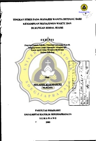 KUSUMADEWI, MELANNY (2003) TINGKAT STRES PADA MANAJER WANITA DITINJAU DARI KEMAMPUAN MANAJEMEN WAKTU DAN DUKUNGAN SOSIAL SUAMI. Other thesis, Prodi Psikologi Unika Soegijapranata Semarang.