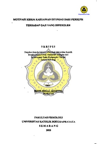 AGUSTINA, IRENE MILLA (2003) MOTIVASI KERJA KARYAWAN DITINJAU DARI PERSEPSI TERHADAP GAJI YANG DIPEROLEH. Other thesis, Prodi Psikologi Unika Soegijapranata.