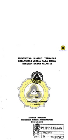 KURNIAWAN, RANDY IRIANTO (1999) EFFEKTIVITAS SUGESTI TERHADAP KREATIVITAS VERBAL PADA SISWA SEKOLAH DASAR KELAS III. Other thesis, Prodi Psikologi Unika Soegijapranata.