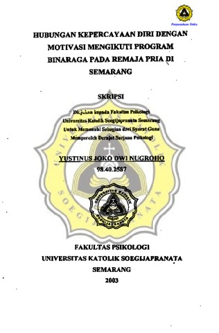 NUGROHO, YUSTINUS JOKO DWI (2003) HUBUNGAN KEPERCAYAAN DIRI DENGAN MOTIVASI MENGIKUTI PROGRAM BINARAGA PADA REMAJA PRIA DI SEMARANG. Other thesis, Prodi Psikologi Unika Soegijapranata Semarang.