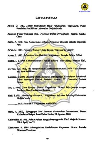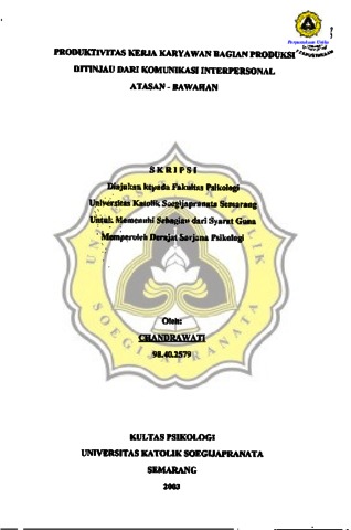 CHANDRAWATI, - (2003) PRODUKTIVITAS KERJA KARYAWAN BAGIAN PRODUKSI DITINJAU DARI KOMUNIKASI INTERPERSONAL ATASAN - BAWAHAN. Other thesis, Prodi Psikologi Unika Soegijapranata Semarang.