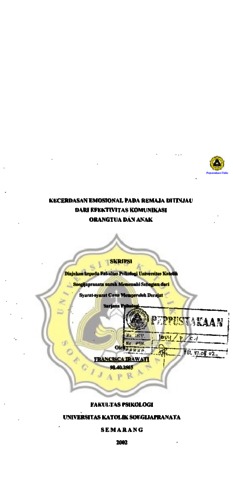 IRAWATI, FRANCISCA (2002) KECEDASAN EMOSIONAL PADA REMAJA DITINJAU DARI EFEKTIVITAS KOMUNIKASI ORANGTUA DAN ANAK. Other thesis, Prodi Psikologi Unika Soegijapranata Semarang.