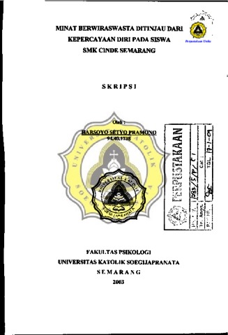 PRAMONO, HARSOYO SETYO (2003) MINAT BERWIRASWASTA DITINJAU DARI KEPERCAYAAN DIRI PADA SISWA SMK CINDE SEMARANG. Other thesis, Prodi Psikologi Unika Soegijapranata.