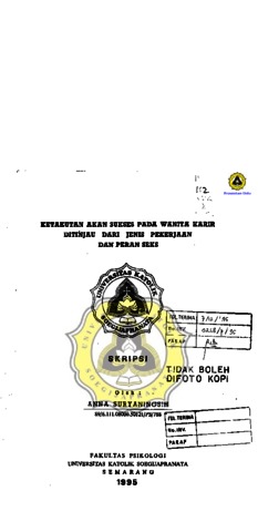 SURYANINGSIH, ANNA (1995) KETAKUTAN AKAN SUKSES PADA WANITA KARIR DITINJAU DARI JENIS PEKERJAAN DAN PERAN SEKS. Other thesis, Prodi Psikologi Unika Soegijapranata Semarang.