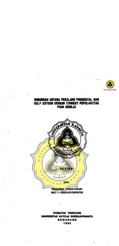 LOGISTASARI, BERLIANA (1995) HUBUNGAN ANTARA PERILAKU PROSOSIAL DAN SELF ESTEEM DENGAN TINGKAT POPULARITAS PADA REMAJA. Other thesis, Prodi Psikologi Unika Soegijapranata Semarang.