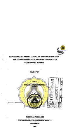 YULIANTO, YOHANES SHEMI (2002) KEPUASAN KERJA ABDI DALEM DALAM KARATON KASUNANAN SURAKARTA DITINJAU DARI MOTIVASI, KEPANGKATAN DAN LAMANYA BEKERJA. Other thesis, Prodi Psikologi Unika Soegijapranata Semarang.