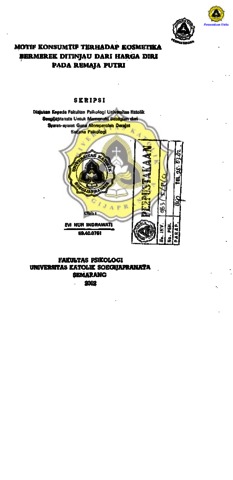 INDRAWATI, EVI NUR (2002) MOTIF KONSUMTIF TERHADAP KOSMETIKA BERMEREK DITINJAU DARI HARGA DIRI PADA REMAJA PUTRI. Other thesis, Prodi Psikologi Unika Soegijapranata Semarang.