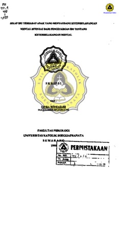 WIDYASARI, CITRA (1999) SIKAP IBU TERHADAP ANAK YANG MENYANDANG KETERBELAKANGAN MENTAL DITINJAU DARI PENGETAHUAN IBU TENTANG KETERBELAKANAGAN MENTAL. Other thesis, Prodi Psikologi Unika Soegijapranata.
