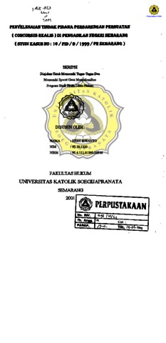 ISWANTO, HERU (2001) PENYELESAIAN TINDAK PIDANA PERBARENGAN PERBUATAN (CONCURSUS AKALIS)DI PENGADILAN NEGERI SEMARANG (studi kasus no. 16/pid/b/1999/PN. semarang). Other thesis, Prodi Hukum Universitas Katolik Soegijapranata.