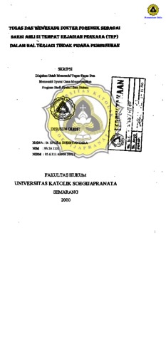 SUDIBYANTARA, ST. ENDRA (2000) TUGAS DAN WEWENANG DOKTER FORENSIK SEBAGAI SAKSI AHLI DI TEMPAT KEJADIAN PERKARA (TKP) DALAM HAL TERJADI TINDAK PIDANA PEMBUNUHAN. Other thesis, Prodi Hukum Universitas Katolik Soegijapranata.