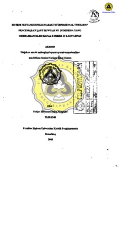 NOEGROHO, FADJAR HARYANTO (2003) SISTEM PERTANGGUNGJAWABAN INTERNASIONAL TERHADAP PENCEMARAN LAUT DI WILAYAH INDONESIA YANG DISEBABKAN OLEH KAPAL TANKER DI LAUT LEPAS. Other thesis, Prodi Hukum Unika Soegijapranata.