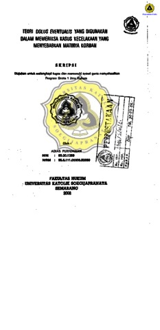 PURNIAWAN, ADIAS (2002) TEORI DOLUS EVENTUALIS YANG DIGUNAKAN DALAM MEMERIKSA KASUS KECELAKAAN YANG MENYEBABKAN MATINYA KORBAN. Other thesis, Prodi Hukum Universitas Katolik Soegijapranata.