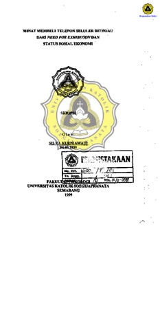 KURNIAWATI, SILVIA (1999) MINAT MEMBELI TELEPON SELULER DITINJAU DARI NEED FOR EXHIBITION DAN STATUS SOSIAL EKONOMI. Other thesis, Prodi Psikologi Unika Soegijapranata.
