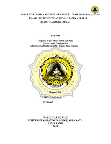 AGABAL, LITINUS (2011) UPAYA PENYELESAIAN KONFLIK PERANG SUKU DI MASYARAKAT ENAM SUKU PEGUNUNGAN TENGAH PAPUA MELALUI RUANG DIALOG KULTURAL. Other thesis, PROGDI ILMU HUKUM UNIKA SOEGIJAPRANATA.