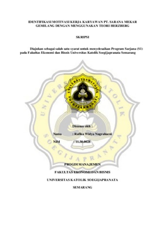 NUGRAHAENI, RAFIKA WIDYA (2015) IDENTIFIKASI MOTIVASI KERJA KARYAWAN PT. SARANA MEKAR GEMILANG DENGAN MENGGUNAKAN TEORI HERZBERG. Other thesis, Prodi Manajemen Unika Soegijapranata Semarang.