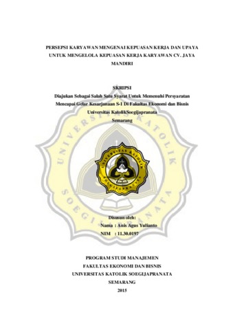 YULIANTO, ANIS AGUS (2015) PERSEPSI KARYAWAN MENGENAI KEPUASAN KERJA DAN UPAYA UNTUK MENGELOLA KEPUASAN KERJA KARYAWAN CV. JAYA MANDIRI. Other thesis, Prodi Manajemen Unika Soegijapranata.