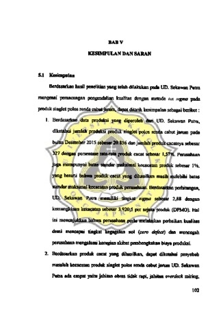 PERANCANGAN PENGENDALIAN KUALITAS DENGAN METODE SIX SIGMA PADA PRODUK SINGLET POLOS RENDA CABUT JARUM UD. SEKAWAN PUTRA