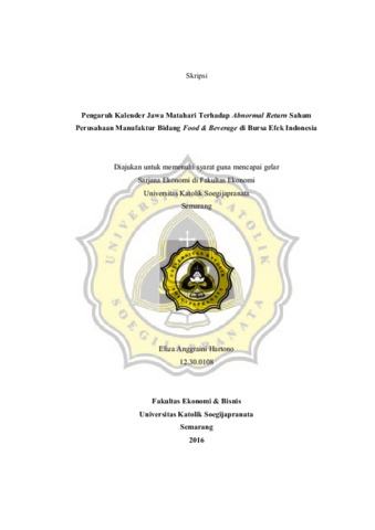 HARTONO, ELIZA ANGGRAINI (2016) Pengaruh Kalender Jawa Matahari Terhadap Abnormal Return Saham Perusahaan Manufaktur Bidang Food & Beverage di Bursa Efek Indonesia. Other thesis, Prodi Manajemen Unika Soegijapranata.