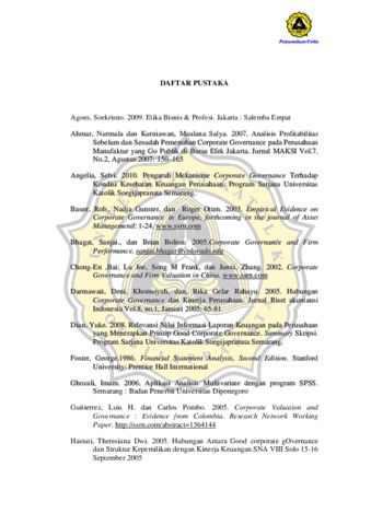 SEPTIANI, SABRINA (2011) Analisis Nilai dan Kinerja Perusahaan Sebelum dan Sesudah Penerapan Good Corporate Governance pada Perusahaan Manufaktur yang Terdaftar di Bursa Efek Indonesia. Other thesis, PROGDI AKUNTANSI UNIKA SOEGIJAPRANATA.