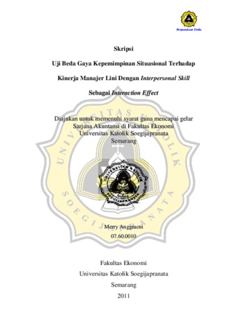 Anggraeni, Merry (2011) Uji Beda Gaya Kepemimpinan Situasional Terhadap Kinerja Manajer Lini Dengan Interpersonal Skill Sebagai Interaction Effect. Other thesis, PRODI ILMU HUKUM UNIKA SOEGIJAPRANATA.