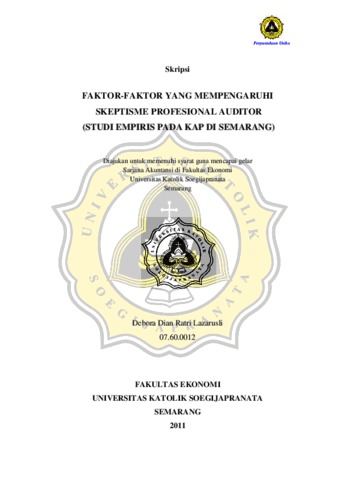 Lazarusli, Debora Dian Ratri (2011) FAKTOR-FAKTOR YANG MEMPENGARUHI SKEPTISME PROFESIONAL AUDITOR (STUDI EMPIRIS PADA KAP DI SEMARANG). Other thesis, PROGDI AKUNTANSI UNIKA SOEGIJAPRANATA.