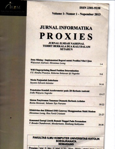 Widyarto Nugroho, Erdhi Pemakaian Kendali Accelerometer pada Game 2D Berbasis Android. Journal informatika proxies. ISSN 2301-9220