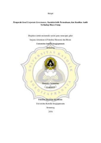 Clementine, Theresia (2016) Pengaruh Good Corporate Governance, Karakteristik Perusahaan, dan Kualitas Audit Terhadap Biaya Utang. Other thesis, Unika Soegijapranata Semarang.