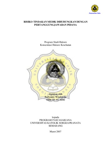 WIRAHARDJA, RULLYANTO (2007) RISIKO TINDAKAN MEDIK DIHUBUNGKAN DENGAN PERTANGGUNG JAWABAN PIDANA. Masters thesis, Magister Hukum Kesehatan UNIKA Soegijapranata.