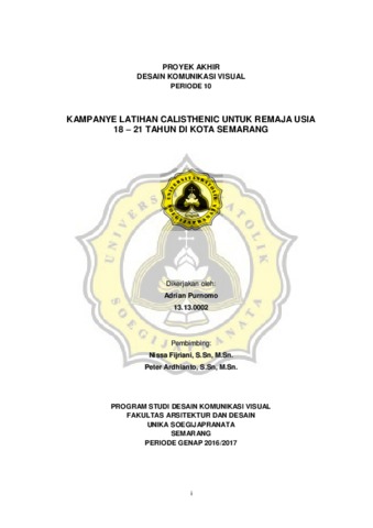 Purnomo, Adrian (2017) KAMPANYE LATIHAN CALISTHENIC UNTUK REMAJA USIA 18 – 21 TAHUN DI KOTA SEMARANG. Other thesis, Unika Soegijapranata.