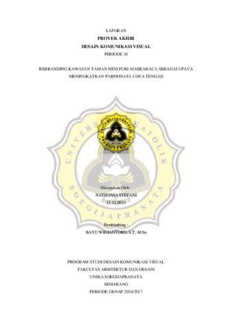 Stefani, Nathania (2017) REBRANDING KAWASAN TAMAN MINI PURI MAERAKACA SEBAGAI UPAYA MENINGKATKAN PARIWISATA JAWA TENGAH. Other thesis, Unika Soegijapranata Semarang.