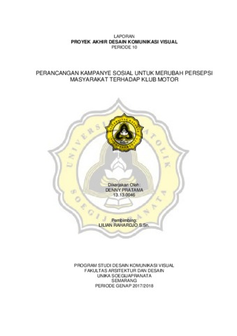Kurniadi, Denny Pratama (2017) PERANCANGAN KAMPANYE SOSIAL UNTUK MERUBAH PERSEPSI MASYARAKAT TERHADAP KLUB MOTOR. Other thesis, Unika Soegijapranata.