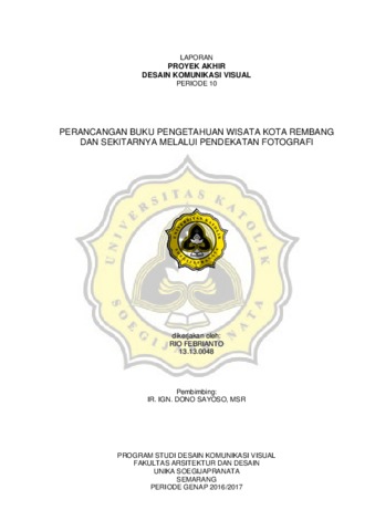 Febrianto, Rio (2017) PERANCANGAN BUKU PENGETAHUAN WISATA KOTA REMBANG DAN SEKITARNYA MELALUI PENDEKATAN FOTOGRAFI. Other thesis, Unika Soegijapranata.