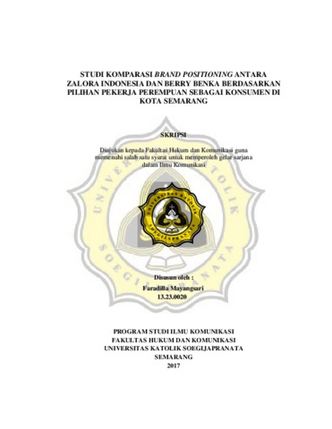 Mayangsari, Faradilla (2017) STUDI KOMPARASI BRAND POSITIONING ANTARA ZALORA INDONESIA DAN BERRY BENKA BERDASARKAN PILIHAN PEKERJA PEREMPUAN SEBAGAI KONSUMEN DI KOTA SEMARANG. Other thesis, Unika Soegijapranata.