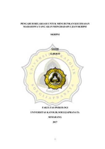 Sandi, Sandi (2017) PENGARUH RELAKSASI UNTUK MENURUNKAN KECEMASAN MAHASISWA YANG AKAN MENGHADAPI UJIAN SKRIPSI. Other thesis, Unika Soegijapranata Semarang.