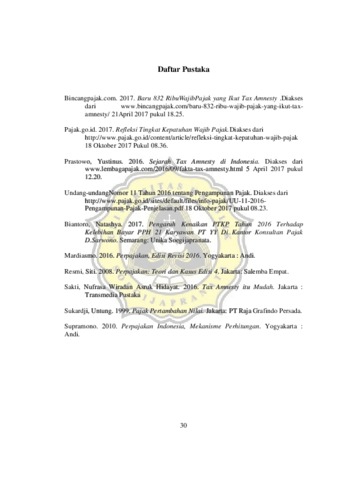 PERATAMA, YOGA (2017) Implementasi Tax Amnesty Bagi Wajib Pajak Orang Pribadi. Other thesis, Fakultas Ekonomi Dan Bisnis Universitas Katolik Soegijapranata.