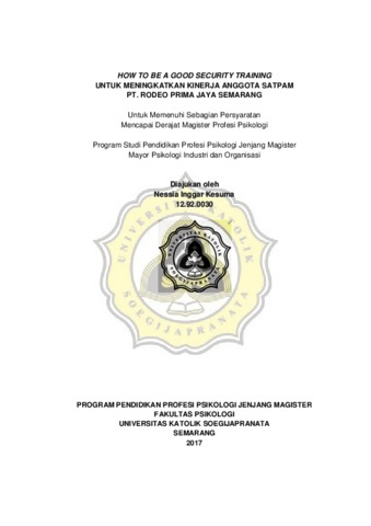 Inggar Kesuma, Nessia (2017) HOW TO BE A GOOD SECURITY TRAINING UNTUK MENINGKATKAN KINERJA ANGGOTA SATPAM PT. RODEO PRIMA JAYA SEMARANG. Masters thesis, Fakultas Psikologi Universitas Katolik Soegijapranata.