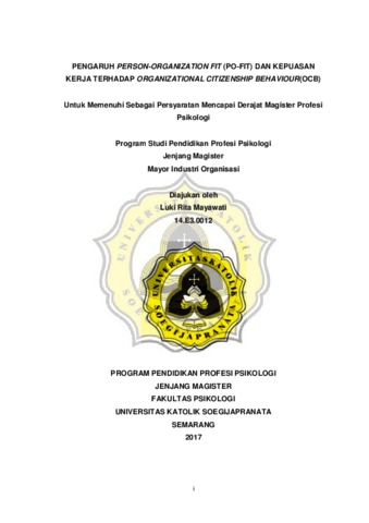 Rita Mayawati, Luki (2017) PENGARUH PERSON-ORGANIZATION FIT (PO-FIT) DAN KEPUASAN KERJA TERHADAP ORGANIZATIONAL CITIZENSHIP BEHAVIOUR(OCB). Masters thesis, Fakultas Psikologi Universitas Katolik Soegijapranata.