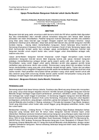 Ardiyanto, Antonius and Soesilo, A. Rudyanto and Suroto, Valentinus and Prawoto, Hudi (2017) Upaya Pemanfaatan Bangunan Kolonial untuk Usaha Mandiri. In: Seminar Nasional Arsitektur Populis.