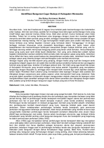 Kurniawan, Eko Wahyu and Muafani, . (2017) Identifikasi Bangunan Cagar Budaya di Kabupaten Wonosobo. In: Seminar Nasional Arsitektur Populis.