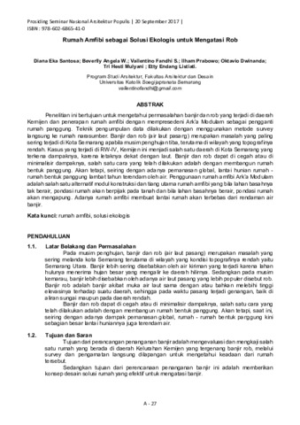 Santosa, Diana Eka and Angela, Beverlly and Fandhi S, Vallentino and Prabowo, Ilham and Dwinanda, Oktavio and Mulyani, Tri Hesti and Listiati, Etty Endang (2017) Rumah Amfibi sebagai Solusi Ekologis untuk Mengatasi Rob. In: Seminar Nasional Arsitektur Populis.